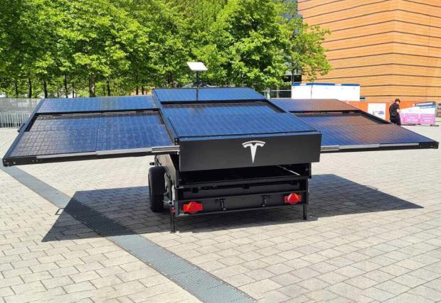 Това е ремарке със соларни панели и SpaxeX Starlink интернет терминал, удължаващо пробега
