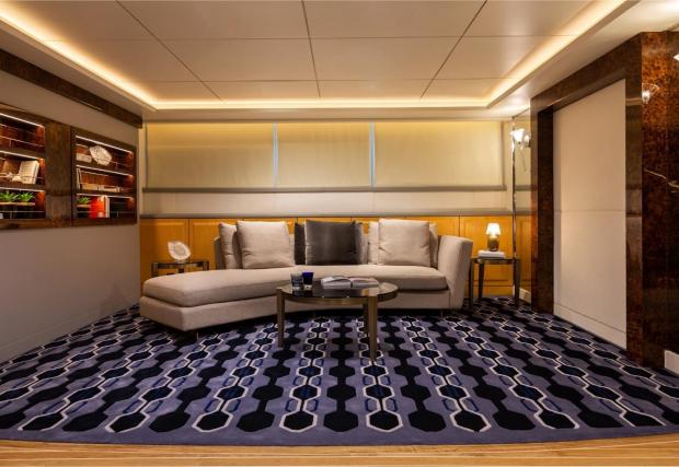 На борда могат да бъдат настанени 12 гости и 5 души екипаж. Капитанът има личен апартамент, а останалите членове на екипажа разполагат с три отделни помещения. За гостите са на разположение три големи каюти и три по-малки, всички със самостоятелни бани. Яхтата има два киносалона, голяма трапезария, бар и няколко салона отвън и вътре.