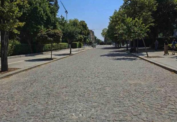 В района на храм-паметника „Александър Невски“ има още няколко промени. Улица „Московска“ (на снимката горе) е затворена за движение на автомобили от паметника „Левски“ до ул. „Дунав“ и вече е пешеходна. А недалеч от там вече започна ремонтът на ремонта с пренареждането на жълтите павета.