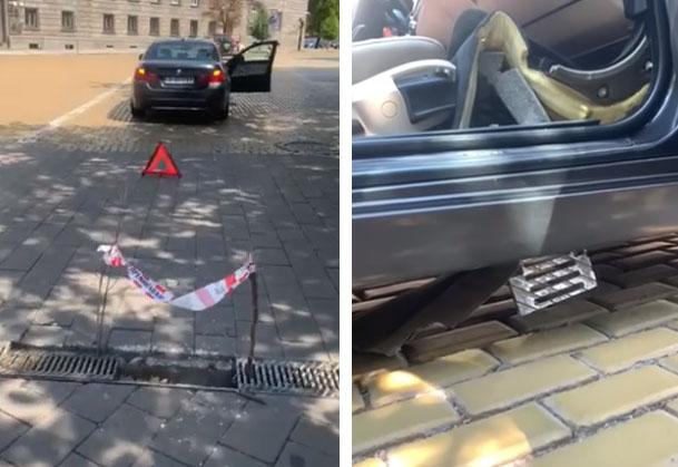 Потърпевшият шофьор засне два видеоклипа с пострадалото си BMW Серия 5. На първият от тях се вижда, че шахтите на пътя до президентството са без болтове. За негово нещастие една от тях пробива пода на колата му, нанасяйки сериозни щети. Слава Богу никой не се е возил в този момент до него, защото можеше сериозно да пострадат неговите крака.