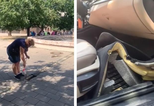 Капак на шахта в София проби пода на кола и влезе в купето й (Видео)