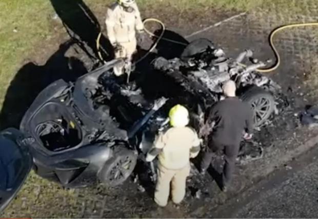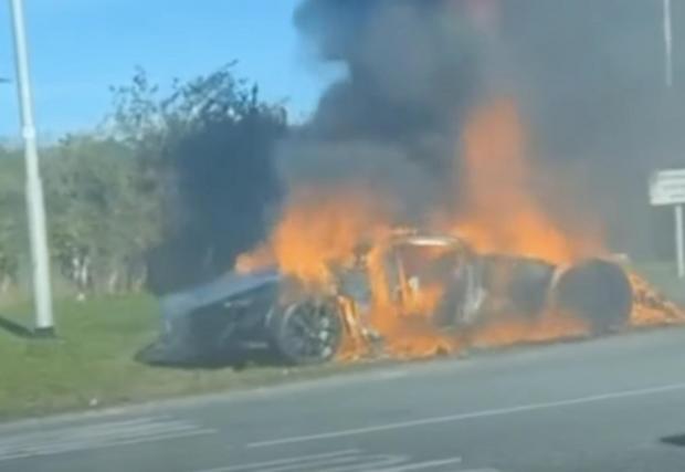 Шофьорът веднага отбива колата извън пътя, като заедно с пасажера от McLaren излизат от нея. Подават сигнал за пожар, като пожарната идва само след 5 минути.
