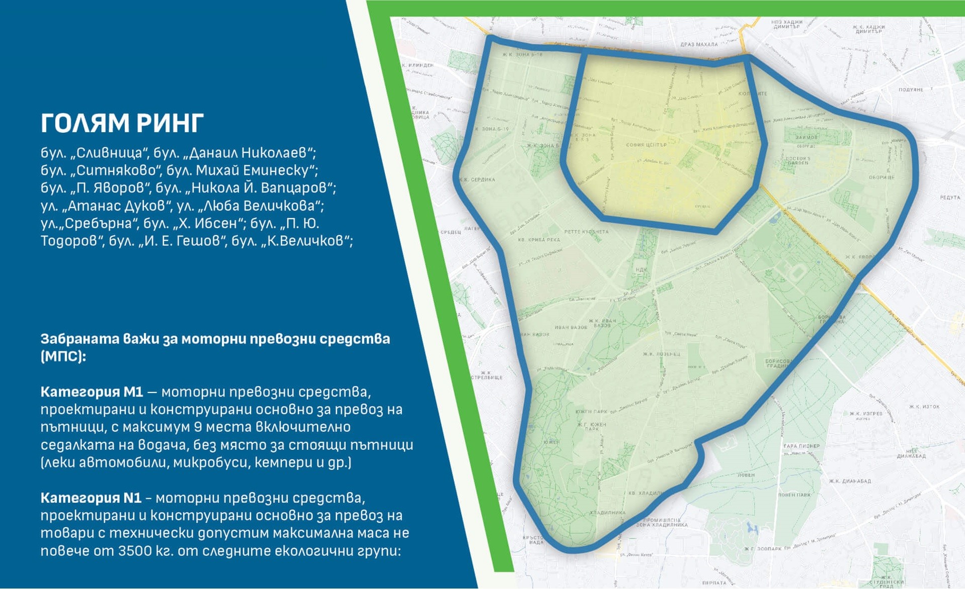 Нискоемисионната зона в София навлиза в третата си зима, като за първи път тя ще бъде значително разширена с въвеждането на големия ринг. Той е с граници, очертани от бул. "Сливница", бул."Данаил Николаев", бул."Ситняково", бул. "Михай Еминеску", бул."Яворов", бул."Никола Вапцаров", ул."Атанас Дуков", ул. "Люба Величкова", ул. "Сребърна", бул. "X. Ибсен", бул. "П. Ю. Тодоров", бул. "И. Е. Гешов", бул. "К. Величков".