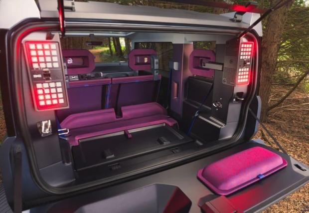 Дизайнът е умишлено прост и здрав – „блок“, стъпил стабилно на четирите си колела, без предни и задни надвеси. Фронтът е хоризонтален с елегантни, интегрирани фарове, а цялата задна част е подчинена на функционалността: двуделна врата, която покрива ширината на автомобила и осигурява лесен достъп до багажника. Задните светлини са позиционирани зад стъклото на вратата и не изискват отделен стъклен панел. Каросерията е в един цвят, с боядисани само три елемента – предната част и рамките около входовете на страничните врати. Странични протектори от рециклируемия Starkle материал и масивни защитни кори отпред и отзад подсилват усещането за издръжливост и приключенски дух. Дръжките са заменени от леки и евтини каишки – решение, което подчертава фокуса върху същественото.