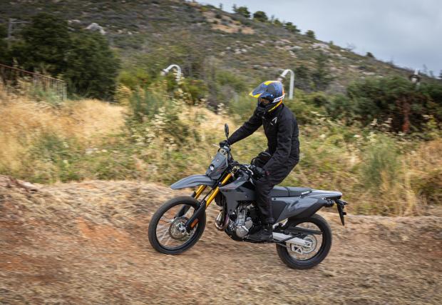 След презентацията се качихме да караме ендуро версията. Моделът се предлага в две разцветки – класическа жълтo/бяло и изцяло сива. Подобно на своя предшественик размерът на гумите е запазен при новия модел – отпред е с размери 80/100-21, а отзад - 120/80-18.