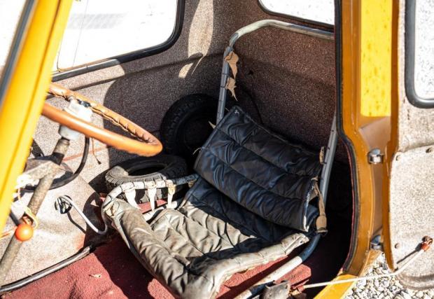 Което, освен минималистичния калибър на Peel P50, е и причина за масата от едва 59 кг. Двигателчето седи буквално в купето и е с обем 50 куб. см, мощно е 4,5 к.с. и е с произход DKW. Задна скорост няма, но пък отзад има дръжка, а напред може да се движи с малко над 60 км/ч, макар че максималната скорост зависи и от масата на шофьора. Ясно е, че динамиката не е силата на количката, за разлика от икономичността – разход от под 3 л/100 км. Опциите също не са били много, да не кажа никакви.
