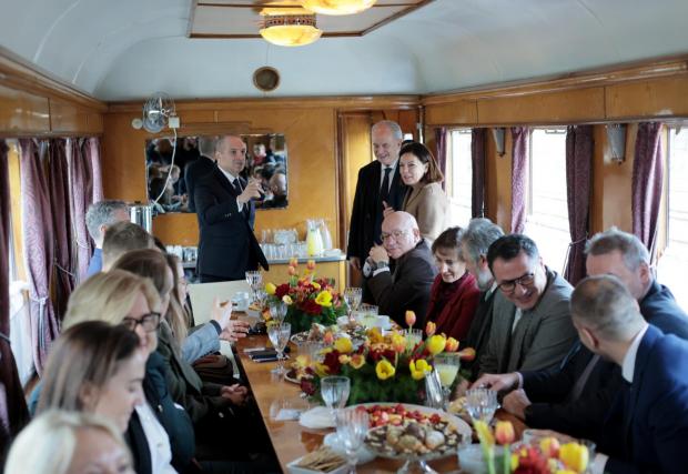 Специално за подписването с царския ретро влак “Корона експрес” до Гюешево пътуваха много високопоставени гости, сред които посланици на държавите от ЕС и НАТО.