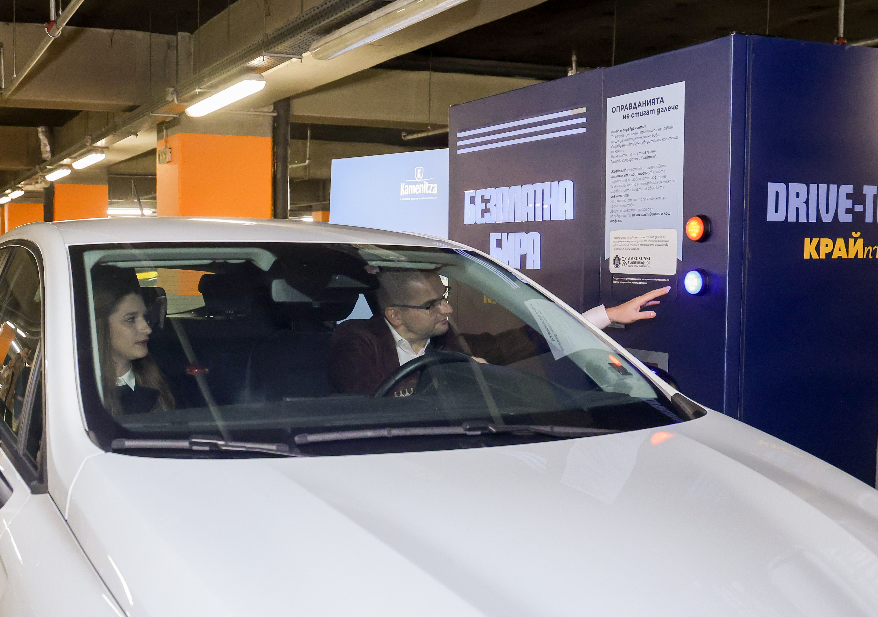 Всъщност инсталацията “КРАЙпът”е любопитна, защото предлага избор за всеки шофьор „да кара“ или „да не кара“ след употреба на алкохол. След като изберете един от двата отговора със съответния бутон, отговорното решение се поощрява с безалкохолна „Каменица“, а признанието за безразсъдно поведение носи символичен „удар“ – деформиран кен, който напомня за последствията от шофирането под въздействие на алкохол. Върху смачканите кенове има специални послания, символ на фалшивата увереност след употреба на алкохол: „Пил съм, ама карай“, „Нищо ми няма“, „Ей го къде е“. Кампанията се осъществява с подкрепата на “Пътна полиция”.