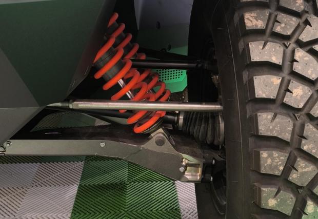 Автомобилът стъпва на 17-инчови алуминиеви джанти с офроуд гуми BF Goodrich с диаметър 37 инча. Габаритите – дължина 4 140 мм, ширина 2 290 мм и височина 1 810 мм, с междуосие 3 000 мм – са максимално използвани в рамките на регламента, за да осигурят стабилност и място за резервни гуми и оборудване.