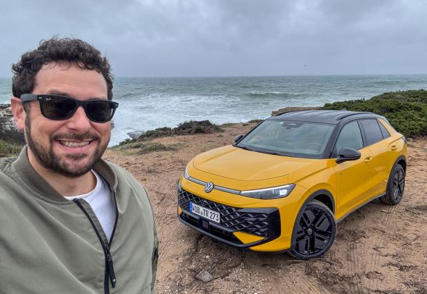 Поздрави от дъждовна Португалия! Неслучайно избрах тестови Volkswagen T-Roc в Canary Yellow, за да се отличава на фона на бурния Атлантически океан. И макар да атмосферните условия да не бяха на страната на журналистите, поканени на първият международен тест на новия T-Roc, все пак се намери прозорец за кратко представяне. На чисто новия VW T-Roc, който се произвежда именно в Португалия, в близост до Лисабон и мястото, на което успях да запиша късото видео, което ще намерите по-долу. Към колата.