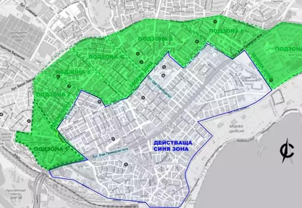 Докато в София зоните за платено паркиране увеличават обхвата си, а цените скачат двойно, Варна от днес за първи път има зелена зона в допълнение към синята, която работи от години. Така площта за платено паркиране в третия по население град у нас се увеличава приблизително двойно.