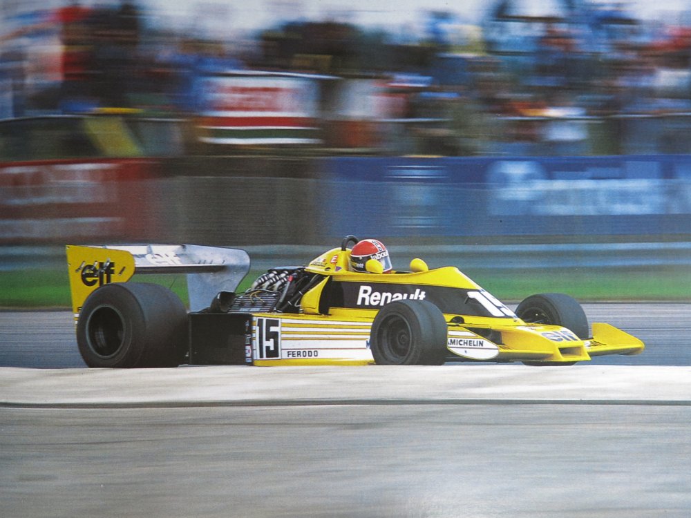 Към средата на седемдесетте години турбокомпресорите вече се използват в болидите на американския еквивалент на Формула 1 USAC (по късно CART), но тъй като двигателите отвъд океана са доста различни (горивото е метанол, а работният обем от 2,65 литра надхвърля значително ограничението от 1,5 литра за двигатели принудително пълнене във Формула 1), никой не приема сериозно идеята за възприемане на турбокомпресора като метод за повишаване на мощността и във Формула 1. Или почти никой – честта да се сблъска с подобно предизвикателство са пада на Renault и по-точно на екипа на главния инженер Бернар Дюдо във Вири Шатион. Конструираният от французите 1,5-литров мотор е шестцилиндров и е базиран на първоначално използваната в спортния двуместен Alpine A440 двулитрова версия. „Бяхме толкова ентусиазирани, че убедихме президента на Renault, Бернар Хано, в нуждата да участваме във Формула 1. По това време, това беше наистина шашава идея. За наша радост, той се ентусиазира също толкова много, колкото и ние“, разказва в спомените си Дюдо. Първият болид с този двигател автоматично се превръща и в първия турбо автомобил във Формула 1 – Renault RS01 наречен по-късно „Жълтият чайник“ е тестван на пистата на Michelin в Клермон-Феран на 23 март 1976 година и дебютира на пистата Силвърстоун с Жан-Пиер Жабуи на волана. Още в началната си версия агрегатът разполага с мощност от 500 к. с. при 11 000 об./мин – постижение, което тогавашните атмосферни мотори са достигали след години еволюция. Само че, това означава и че инженерите се сблъскват с проблеми като необходимостта от по-големи радиатори, а пилотите трябва да шофират по коренно различен начин.