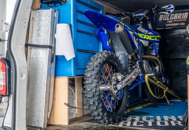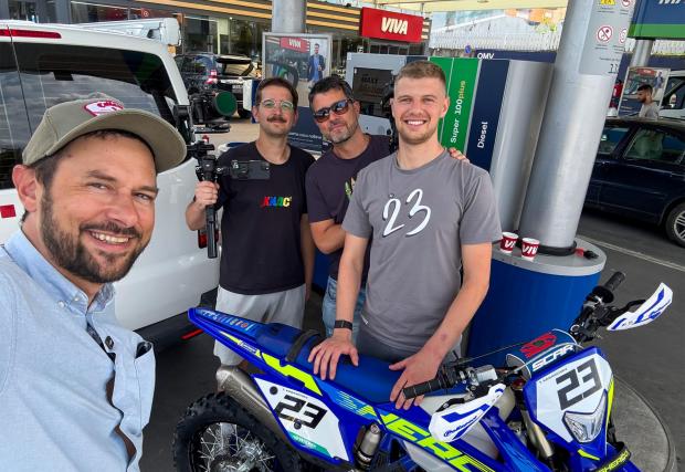 И с кафе VIVA, което пихме преди да се качим на верния бял бус, който е дизелов и се движи на MaxxMotion Diesel, а „любимата“ на Тедо, която се вози отзад - 300 SE XTREM, „се храни“ със Super 100 plus. А междувременно, броени часове преди да пуснем видеото, Теодор обяви, че договорът му със Sherco е удължен! Браво!
