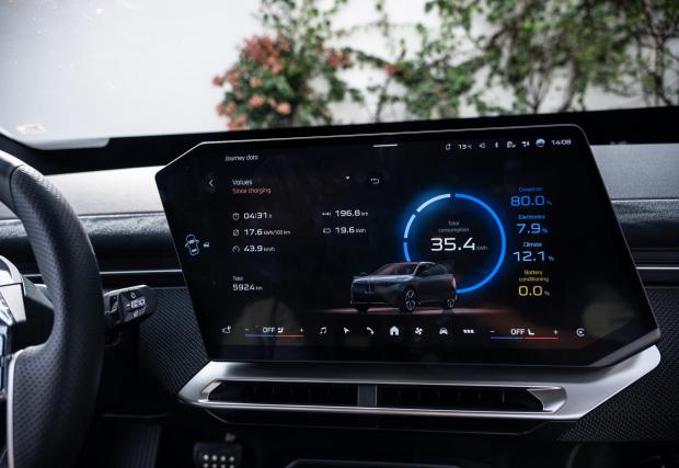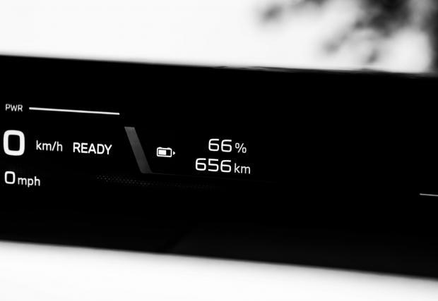 Любопитно ми беше да разбера и данните за целия „живот“ на колата, който не бе много дълъг, предвид факта, че е предсериен екземпляр на вероятно бе произведен преди няма и месец. Извиках ги на бордовия компютър от менюто „От завода“, което показа километраж 5924 км за 5 дни и 7 часа шофиране. Средната скорост бе по-висока, 47 км/ч, както и разходът – 19,5 кВтч/100 км. Разделен на капацитета резултира в пробег от около 560 км.
