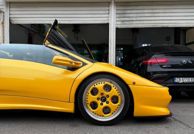 В галерията ще видите снимки от различни периоди на колата. От 1999 до 2006 тя е в Швейцария. После живее във Франция с регистрационен номер 777APY31. От 2022 за кратко е в Швеция, преди през 2025 г. да се появи в България със сравнително сериозния за Lamborghini Diablo пробег от 72 хил. км.