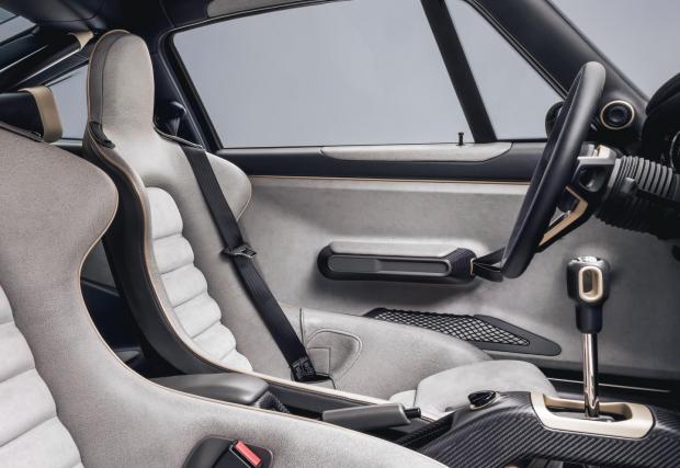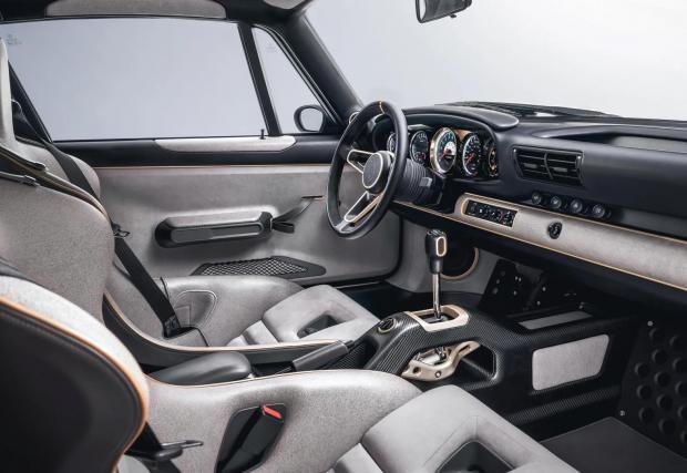 Има и две големи VTG турбини, за да е още по-интересно. Резултатът е впечатляващ – 710 к.с. и 750 Нм въртящ момент, като Singer уточняват, че това са стойности нетни показатели по SAE. Тоест, може да разбираме над 600 к.с. на задните колела, любезно доставяни през 6-ст. механична кутия с изнесен по-високо от обикновеното лост, „кацнал“ на открит механизъм за превключване.