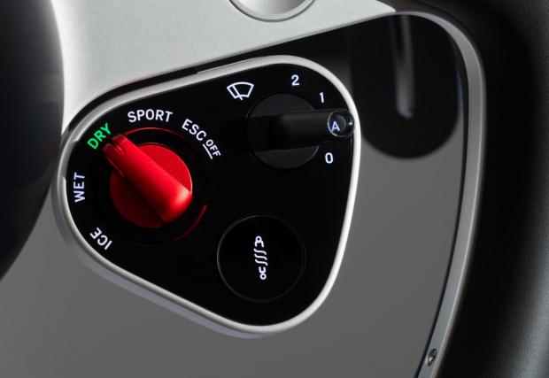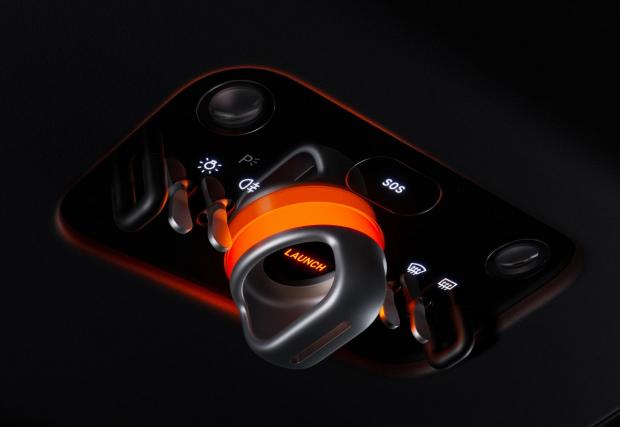 Споменатият вече лаунч контрол се активира от панел пред централното огледало, в които са поместени и алуминиеви превключватели в стил ЦК ключета, каквито има и на централния дисплей. Централната конзола пък е направена от Gorilla Glass с много интересна технология, чрез която е надупчена - 13 000 микро отвора, през които е вкарано специално мастило.