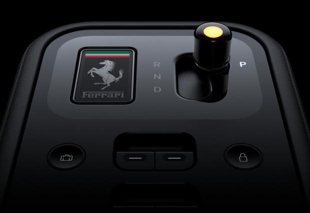 Яко е, че стрелката на скоростомера е абсолютно истинска, физическа, също от лекия метал, като и трите „часовника“ са затворени със стъкло Gorilla Glass, което създава допълнително аналогово усещане. Целият панел е свързан с кормилната конзола и се движи заедно с нея при настройка, което се случва за пръв път в модел на Ferrari.