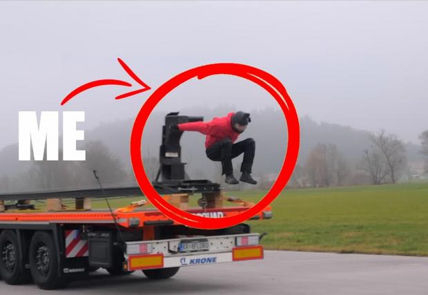 Не правете това вкъщи: Изстреляха човек от камион с 80 км/ч (Видео)