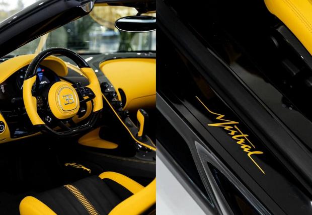 Както ви съобщихме преди няколко дни, първото Bugatti W16 Mistral вече е в България, като собственикът му е Ваньо Алексиев. Нови снимки в Instagram профила на Валерия Георгиева показват суперколата в целия ѝ блясък - тъмно сив екстериор и жълто-черен интериор.