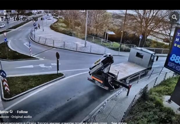 Кметът на Стара Загора Живко Тодоров публикува абсурден случай, запечатан от видеонаблюдението в града. Камион помита оградата на едно от кръговите кръстовища в Стара Загора заради забравен стабилизитор. Наглед дребното недоглеждане можеше да доведе до тежки последици, ако на тротоара в този момент имаше пешеходци. За щастие инцидентът се разминава без пострадали или жертви.