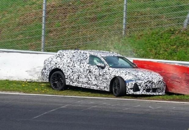 Audi усилено тества новото RS 6 Avant на “Нюрбургринг”, като тестовете са буквално до ръба на сцеплението. Видео от канала CarSpyMedia показва, че следващото поколение на супер комбито вече се разписа на стената от гуми на легендарната писта – за щастие без сериозни последствия за пилота и колата.