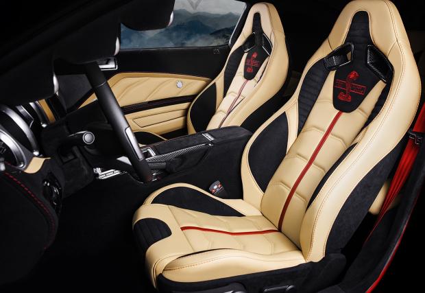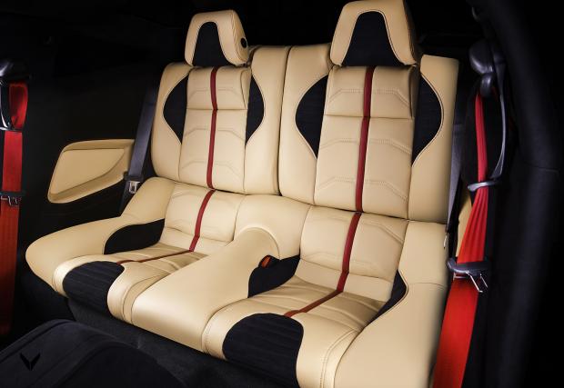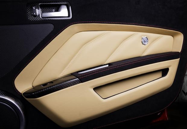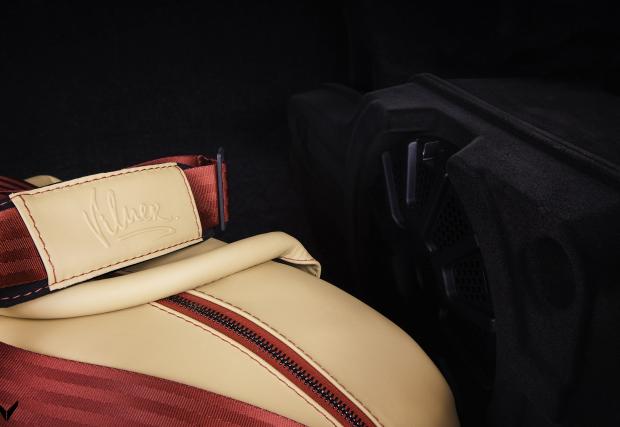 И накрая, подписът на Vilner – специалната чанта. В случаят те са две, като втората е комплимент към дамата на клиента. Бежова кожа, контрастни шевове, червена бродерия с логото на Super Snake и карбонови катарами, тези полезни аксесоари няма как да бъдат по-подходящи за този наистина специален автомобил.