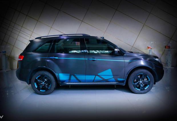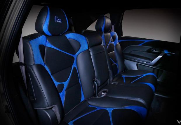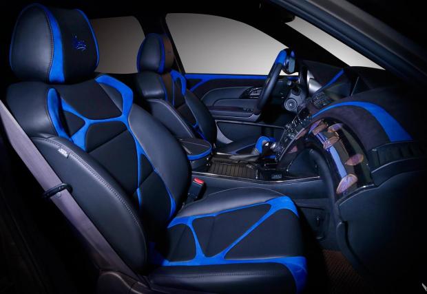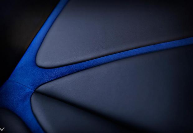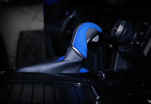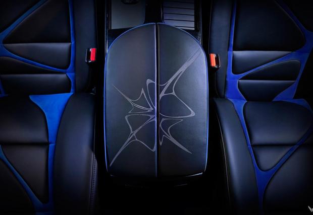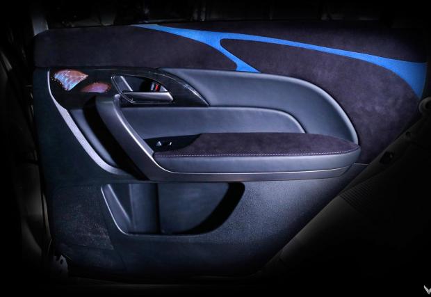 Цялото табло е облечено в алкантара в два цвята, а седалките и корите на вратите са тапицирани с доста интересна комбинация от черно-лилава кожа и синьо-лилава алкантара. Най-интересната част от този проект обаче е ‘night sky’ таванът, който e същият, за какъвто Rolls-Royce биха ви поискали 13 хил. долара доплащане. Хората на Vilner са надупчили алкантарения таван с множество фиброоптични влакна, които нощем светят и създават ефекта на бистро звездно небе.