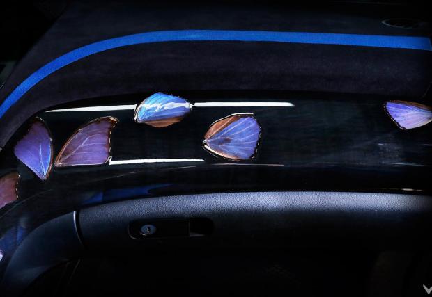 Именно това се е случило в китайското ателие на Art Studio Vilner. Жената отглеждала пеперуди и била изключително голям почитател на... природата, а въпросните шест създания били свършили земното си съществуване. Какво по-логично продължение на пътя им от запечатването им в таблото и вратите на Acura MDX? Освен апликациите с прозрачнен лак, през който крилата се виждат в доста добри детайли, пеперудената тема е продължена навсякъде в салона.