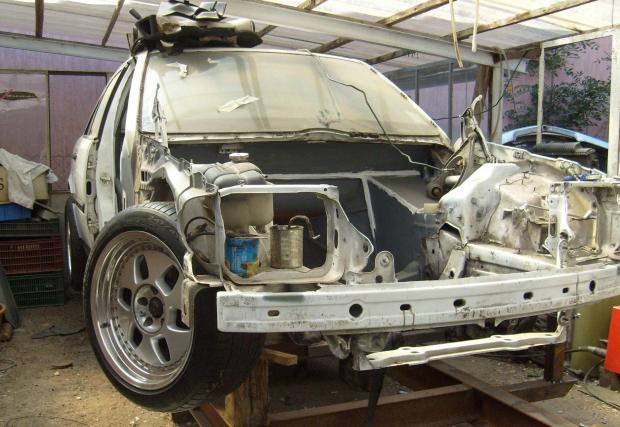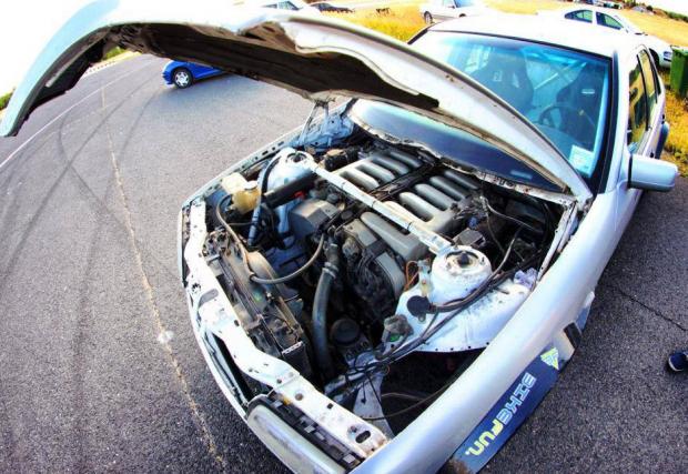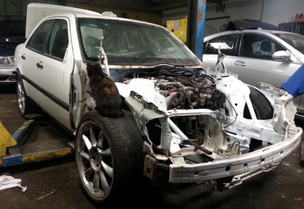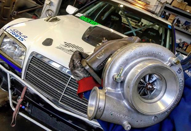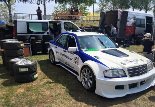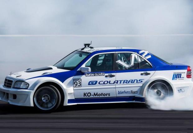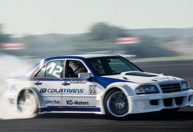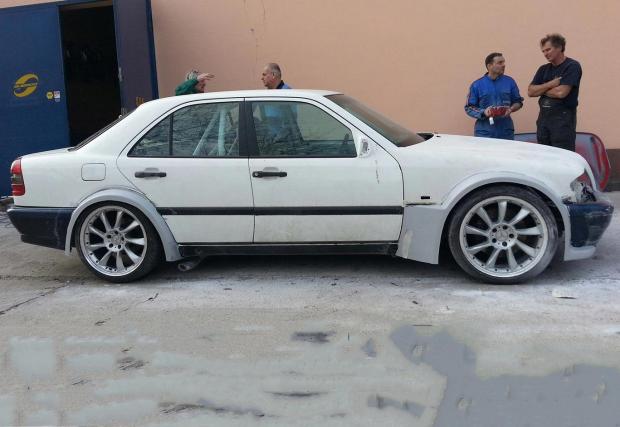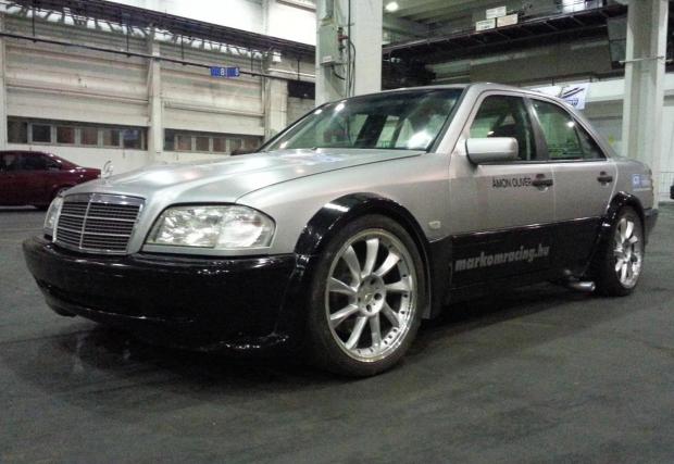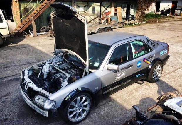 Помните ли Еймън Оливър, унгарският пич, който лудееше с S-Class W140? E, това е неговата състезателна кола – Merc C-Class W202 в която е приютил 6-литров V12 мотор M120 от S 600. Към който е закачил и турбина BorgWarner, за да стане количката подобаващо мощна за дрифт.