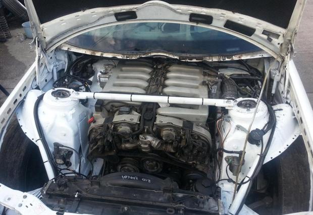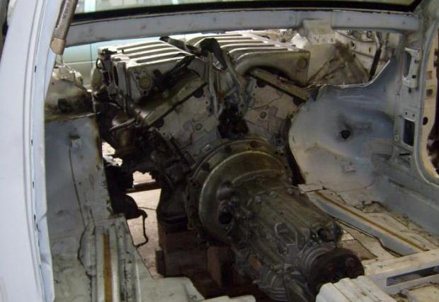 Резултатът е мощност от 630 к.с., максимален въртящ момент от 900 Нм и доста приятен звук. Предлагаме ви да разгледате обилната галерия, в която има и кадри от самия процес по имплантиране на масивния мотор, а след това може да кликнете и на тази луда W140-ка, за да я видите в действие. В гората.