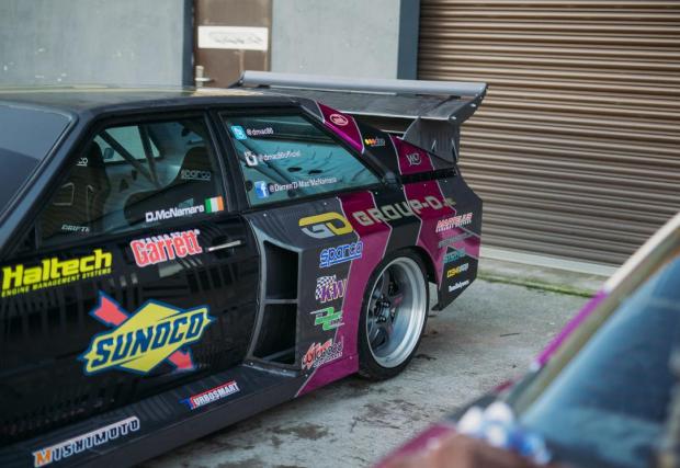 В публикувания там материал няма много информация, но се казва, че автомобилът все още се прави и то по обратния път – отвън навътре. Тоест, екстериорът е напълно готов, има си и готини джанти Meister S1R, както и спирачки с по 4 бутала Dynapro, но не-quattro-то все още си чака мотора, трансмисията и други важни чаркове. Затова ще видите и снимка на която я бутат, а не защото е със задно. Идеята е интересна, а въпросният мотор е 2,7-литров 5-цилиндров с турбо, генериращ достатъчните 700 к.с.