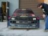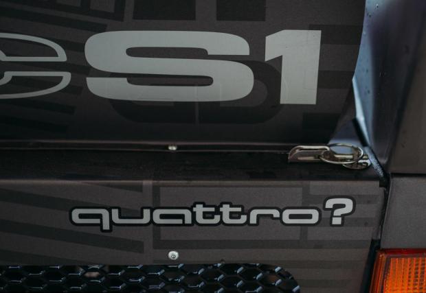 Audi-то всъщност е дълга база, за разлика от оригинала, и предназначението му не е било да лети над главите на зрителите по отсечките на рали „Корсика“, а да се движи с вратите настрани, постоянно и по асфалт. Попаднахме на колата в стабилния сайт speedhunters.com и като видяхме надписа quattro? на задния капак, се изкушихме.