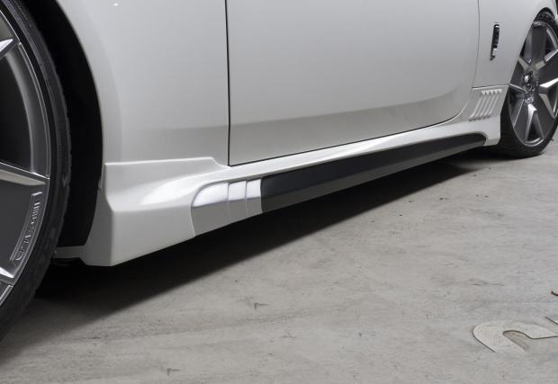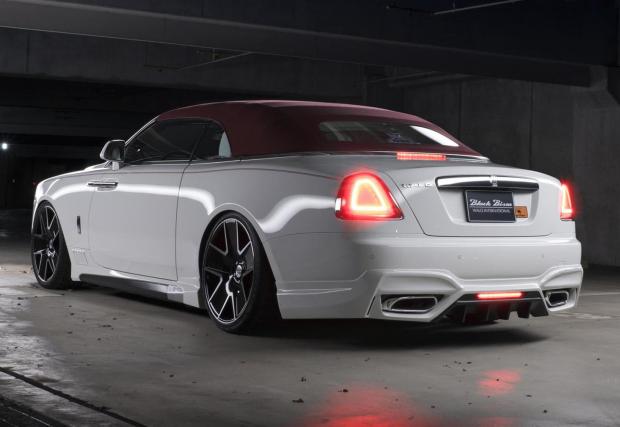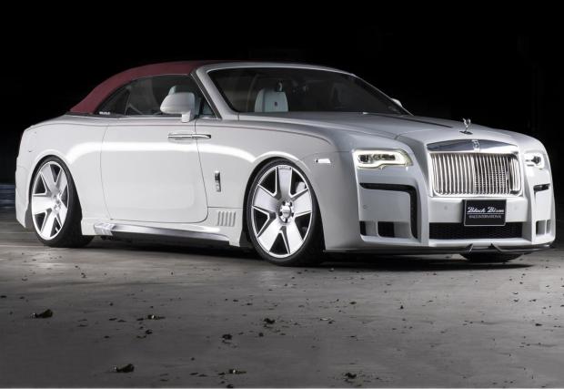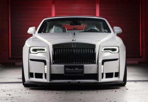 Този Rolls Dawn обаче не идва от Гудууд, а от Япония, от скандалния тунер Wald International, който кръщава абсолютно всеки свой проект с разширението Black Bison. Без значение дали колата е черна или бяла. В случая „Черният бизон“ е бял, качен на 21-ичнови Duchatlet D41C колела, които са с различен цвят от двете страни на колата. Самото купе пък е свалено с няколко сантиметра, а бодикитът е скандален.