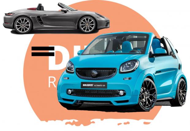 Окей, тук говорим за базова 718-ка, но нека да сравним техниката на двете коли. Smar-тът на практика е Renault Twingo пипнато от Brabus: 0,9-литров мотор с 3 цилиндъра и мощност от 125 к.с. С тях колата ускорява от 0-100 км/ч за 9,5 секунди и развива „респектиращите“ 175 км/ч. Porsche 918 Boxster от своя страна идва с 2-литров турбо мотор, 300 к.с., 5,1 до сто и 275 км/ч. Някак си цената на Brabus-а не ни е оправдана. А вие кое бихте избрали, оглозганото Porsche и тунингованoто Renault?