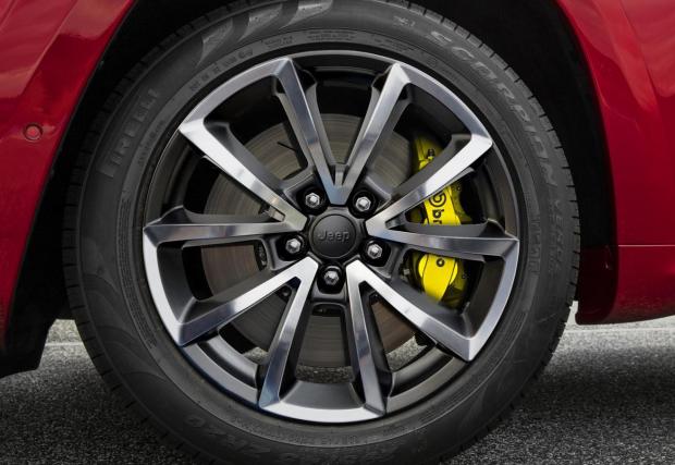 Спирачната сила също трябва да е адекватна. Jeep са монтирали най-големите дискове слагани някога на... Jeep – предните ротори са с диаметър 400 мм и се стискат от 6-бутални апарати Brembo. Харесва ли ни? Абсолютно. Колата не може да се сравнява с Cayenne Turbo S по изтънченост и рафинираност, но, леле, 707 коня и такава динамика в джип, тоест в Jeep, си е супер кеф, особено за парите на добре оборудвано BMW Серия 5 с 3-литров дизелов мотор.