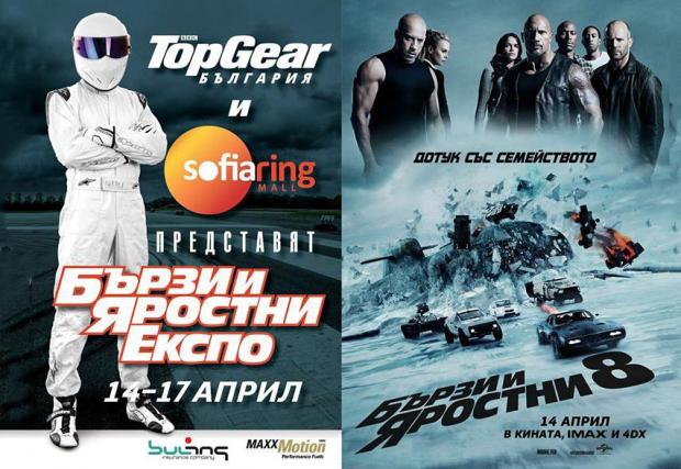 Ролките с 8-та лента поредицата „Бързи и яростни“ ще се завъртят у нас за пръв път тази вечер, а заедно с тях пред „София Ринг Мол“ ще се завъртят в пушек също авто и мото гуми. Причината е старта на „Бързи и яростни Експо“, събитие включващо дрифт и стънт програма, селекция от готини коли, както и изложба с най-добрите фотографии от 10-годишната история на списанието BBC TopGear в България.