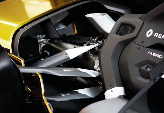 Тягата идва от бензинов турбо V6, енергия възстановяват два KERS-K модула, а във всяко предно колело работи по един 250-киловатов ел. мотор. Да, според Renault след 10 години F1 болидите ще са 4x4, честито. Дали двойното предаване наистина ще внесе революция във формулата както направи при ралитата? Съмняваме се, но колата на французите е доста яка.