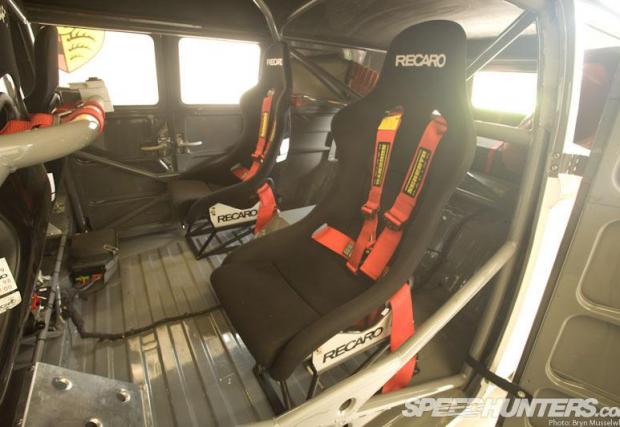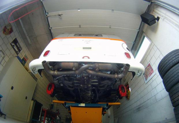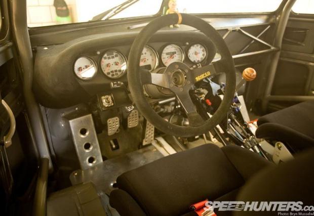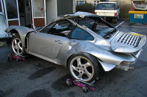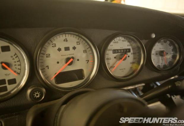 Таблото също е свалено от 993-ката, както и спирачките върху които са нахлузени 18-инчови BBS-ки с магнезиеви сърцевини и обути в... сликове Pirelli. Това чудо определено има сцепление. Фред е премислил всичко до последния детайл. Каросерията е усилена, монтирани са 4 състезателни седалки Recaro, a таванът е карбонов. Ако продължим да описваме всичко направено рискуваме да свърши интернета, така че ще спрем дотук. Колата е страхотна, галерията е пълна, а клиповете са няколко. Приятно гледане, приятели!