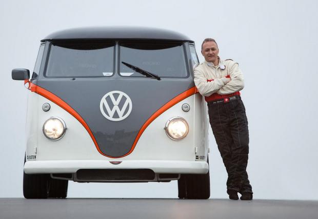 То е дело на швейцареца Фред Бернхард, супер Porsche и VW ентусиаст, човек състезавал се с мотоциклети около 30-ина години и видимо – по това, което е сътворил – педант. Детайлността на изработката и премислеността на този проект просто изумяват. Приложили сме и няколко клипа от различни години (бусът първо е черен, през 2007-ма, като през годините търпи леки трансформации).