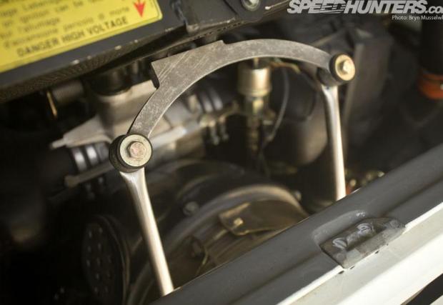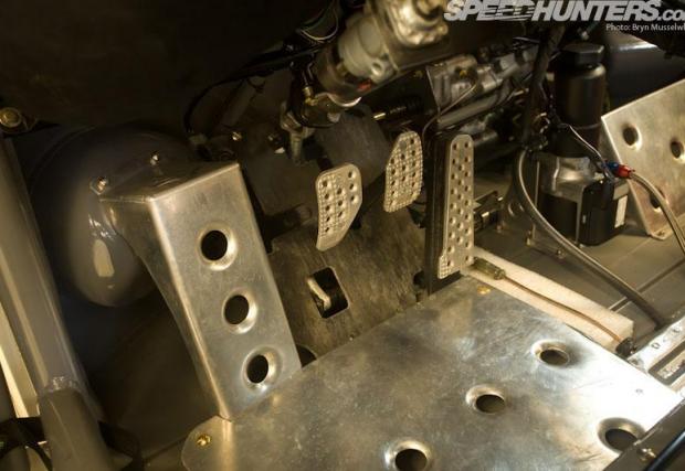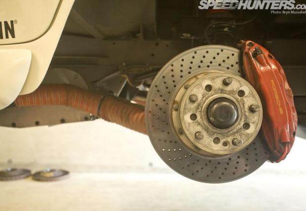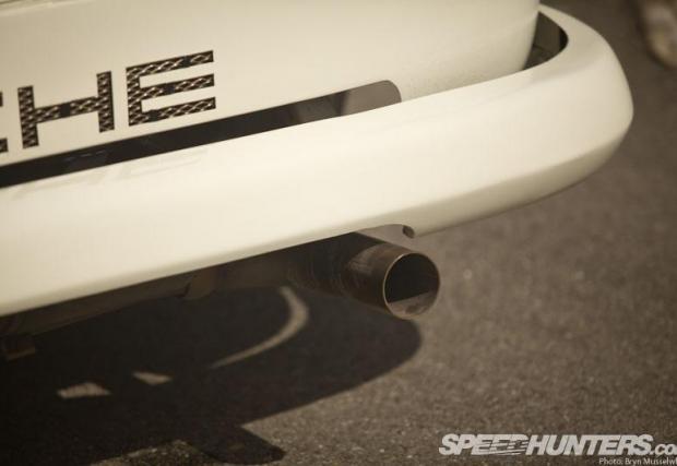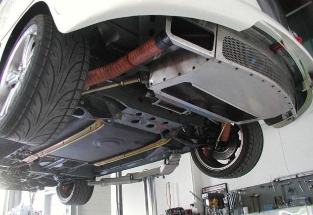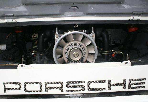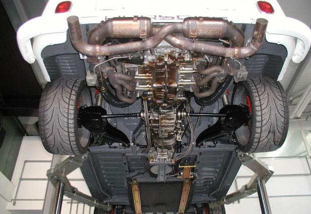 Какво се крие отдолу? Ами, крият се доста от чарковете на смазано Porsche 993 Turbo и най-вече неговия двигател. Въздушната 3,6-литрова боксерна машина с 6 цилиндъра и (в случая) мощност от 522 к.с. и 757 Нм, макар че тези цифри могат да варират в зависимост от настройката. Предаването разбира се е задно, а скоростната кутия е от Porsche 996 GT3. Само вижте лоста – дървен „сандвич“, препратка към легендарното 917, каквато има и в епичната Carrera GT.