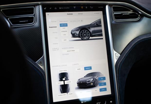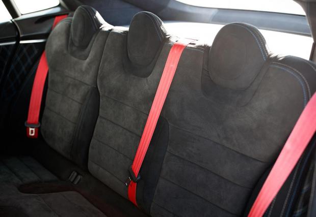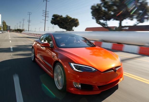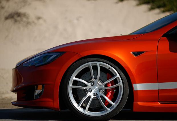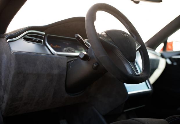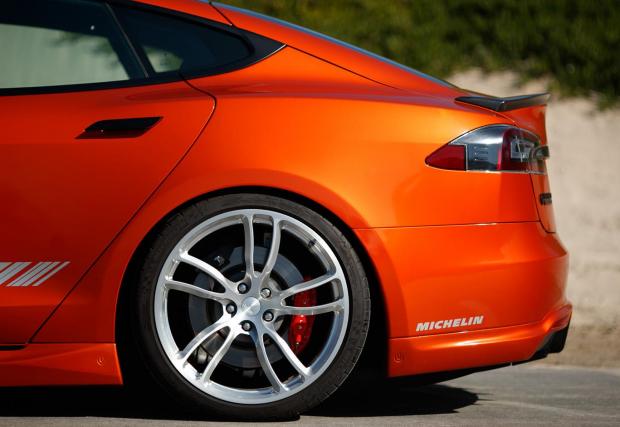 По задвижването няма модификации, но излъчването на Model S е подсилено без да бъде прекалено. Керамични дискове с 6-бутални апарати Brembo отпред? Прекалено амбициозно? Ами, не защото тези спирачки не са там за да издържат на брутална злоупотреба, а най-вече за да спестят 9 кг от масата, което е добре дошло за всяка кола, особено за електромобил. Но пък, вижте ги как изглеждат, бихме си ги поръчали и само заради това.
