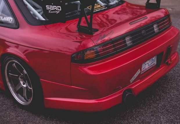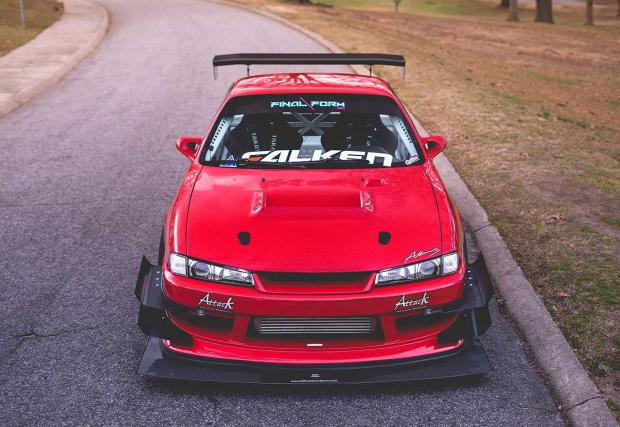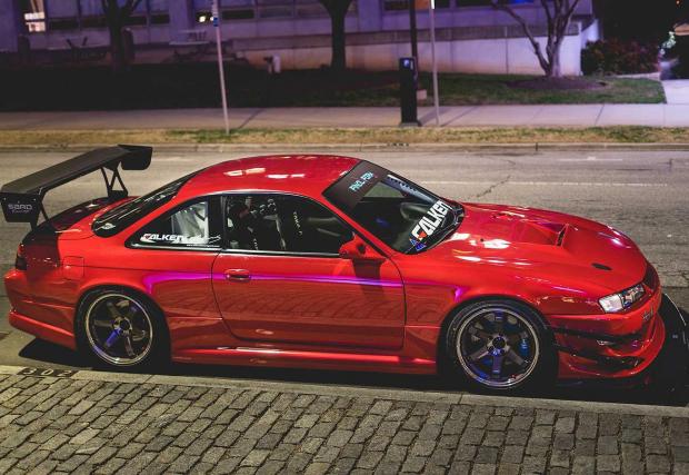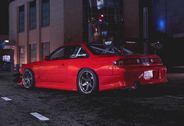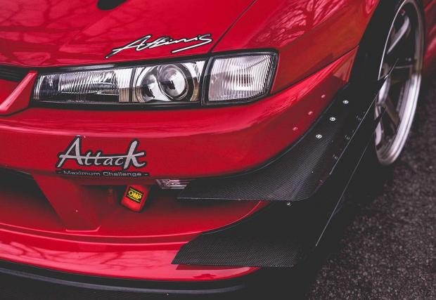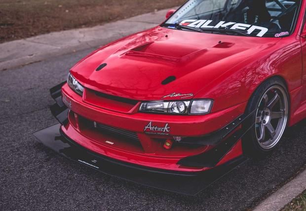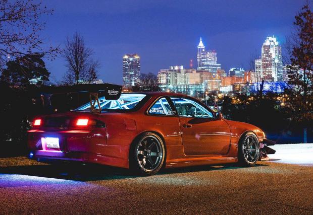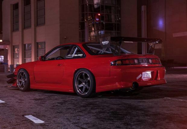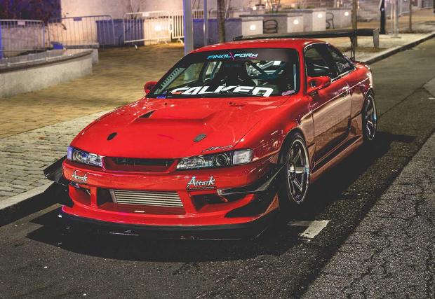 В случая гледате снимки на Nissan 240 SX от 1995, но с ‘Kokui’ предница (така наричат фейслифта на S14) и ново сърце – редовият шестак RB25DET от Skyline GT-R R35. Колата е дело на човек на име Джон Маркадакис, като почти всичко пипнато по купето е пипнато от него. Само ролкейджа и боята е доверил на професионалисти, всичко останало е направил той.