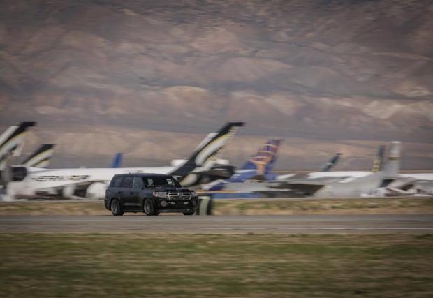 Зад волана по време на опита е пилотът от NASCAR Карл Едуардс, а мястото, избрано за рекорда – космическия център Мохаве. Няма как да е по-подходящо.