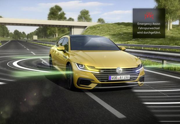 Arteon притежава нещо, наречено Emergency Assist 2.0. Системата е способна да поеме контрола над автомобила, ако забележи, че ви е прилошало или по друга причина губите контрол над събитията. EA 2.0 обединява адаптивния круиз контрол, асистента за следене на мъртвия ъгъл, помощника за спазване на лентата и този за паркиране. Този многофункционален ангел пазител първо ще ви предупреди за предстояща опасност със звуков сигнал, след това със светлинен и, ако все още не реагирате, ще активира спирачките без ваше участие. След Volvo XC60 този VW е втората кола в света, която не само спира автоматично, но е способна автоматично да заобиколи препятствието. Това става с включен съответен мигач и след траеща хилядни от секундата „консултация” със сензорите, които следят идващите зад вас автомобили.