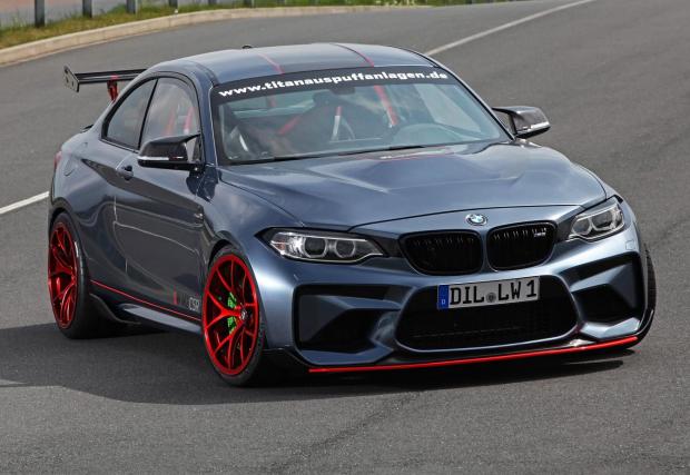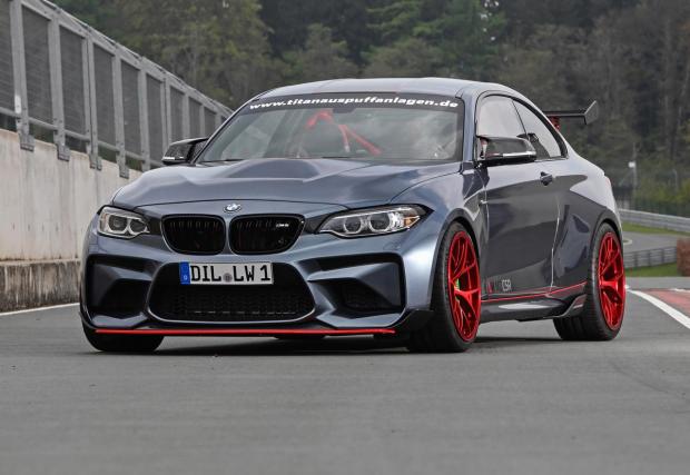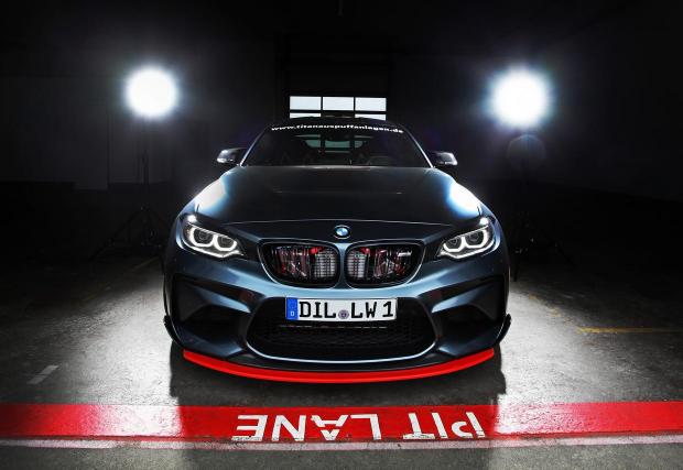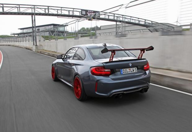 Казват обаче как са го направили. Взели са M2-ка и са сменили мотора с S55-ица от M3/M4, само че преди това са убедили 3-литровия битурбо редови шестак да избълва 612 к.с. и 767 Нм. Шестстотин и дванадесет коня в двойка, съвсем нормално, при това в двойка, която се движи напред (и настрани, а вероятно и в кръг...) заради задните си колела – тук няма xDrive. Кутията е 7-степенната М-ска машинарийка с два съединителя, вероятно подсилена, имайки предвид че количката е със 190 к.с. по-мощна от M3 и M4.