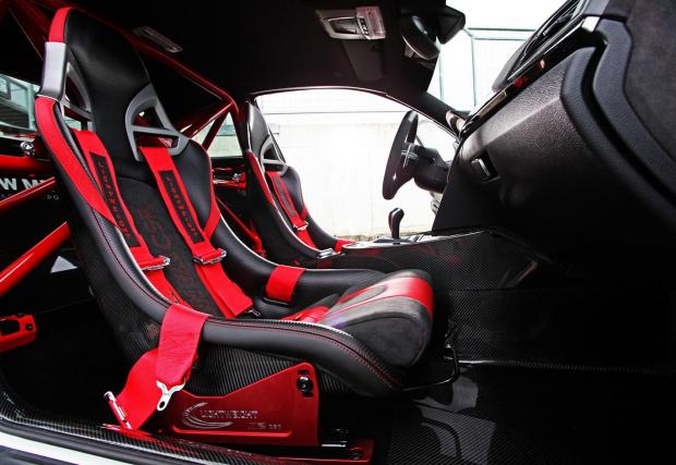 Как така? Ами с нов чифт по-големи турбини, добавяне на водна инжекция подобна на системата при M4 GTS, ново ECU, колектори и изпускателна система. Когато я подкарали за пръв път обаче, пичовете от LP установили, че тягата е прекалено голяма за колата (изненада!), поради което решили да я скопят на едва... 590 к.с. и 737 Нм. Тези цифри се предават на асфалта през 19-инчови джанти и гуми с размер 295/30, а отпред се търкалят също 19-ки Michelin Cup2 с размери 265/35.