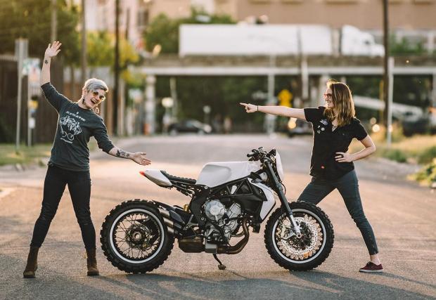 „MV Agusta Brutale е страхотна машина. Карала съм цялата серия (Brutale) на писта и всичките се държат, като мотори-мечта. Затова решихме да оставим основните компоненти в заводски вид – окачване, спирачки, двигател и изпускателна система – и да се съсредоточим върху панелите и резервоара.“ Това казват дамите създатели тази яка машинка Софи Цингос (GT-Moto) и Алиша Елфвинг (MotoLady).