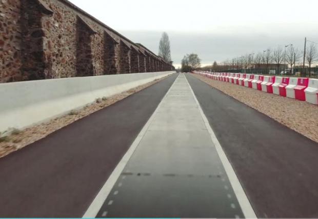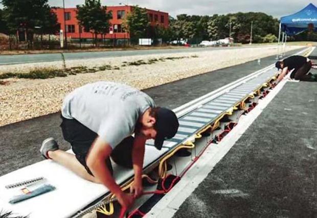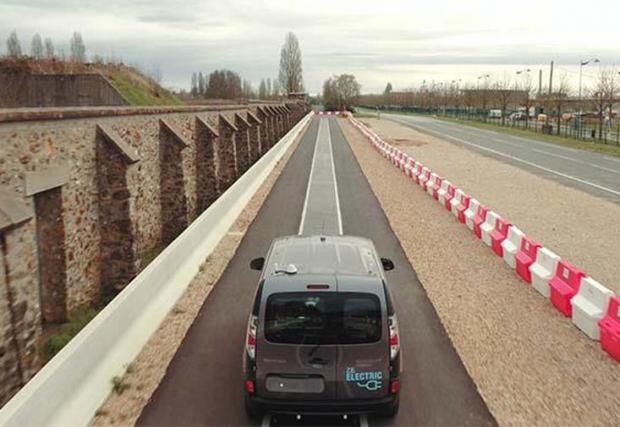 То е създадено от телекомуникационната компания Qualcomm. Тя от години работи върху методи за безконтактно зареждане в движение и в момента е на етап, в който прави тестове с реално 100-метрово трасе във Франция. Пътят е способен да зарежда колата с толкова голяма мощност, че на практика изравнява или дори надхвърля енергията, която ѝ е необходима, за да се движи със 100 км/ч. От Qualcomm в момента са постигнали зареждане от 20 кВт. За сравнение електрическото BMW i3 харчи средно 12,9 кВтч/100 км.