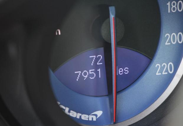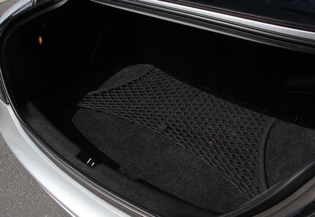 И не само, колата върви още с комплект оригинални книжки и каталози, както и мрежа за багаж в... багажника. Но, разбира се това не е най-важното, по-важното е, че боядисаното в Crystal Laurite Silver купе е на под 8 хил. мили или под 14 хил. км, а интериорът няма видими следи от употреба. Като може би изключим ръчната спирачка, която по някаква причина е изскочила от гнездото си.